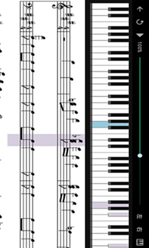 -可自行调节钢琴块的宽度:点击钢琴键盘左右两边的+-号可随时调节钢琴块的宽度。