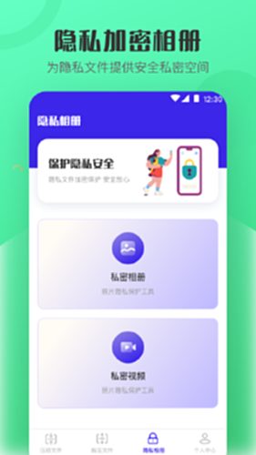 解压缩电脑版介绍:这款APP是一款高效的手机解压缩工具,支持多种压缩文件格式(包括ZIP、RAR、7Z、TAR、ZIPX、GZIP、BZIP),可以方便地压缩和解压文件。此外,它还内置了隐私相册功能,允许用户一键加密图片和视频,有效保护个人隐私。