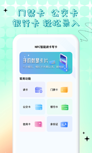 NFC门禁卡公交卡电脑版介绍:这是一款利用NFC技术的手机读写工具,可以将门禁卡、电梯卡、停车卡等IC卡的信息读取并存储在手机中,从而实现用手机代替物理卡的功能。应用采用数据算法加密技术确保信息安全,界面简洁易懂,操作简单。这款工具让您出门不再担心忘记带钥匙或卡,轻松享受便捷生活。