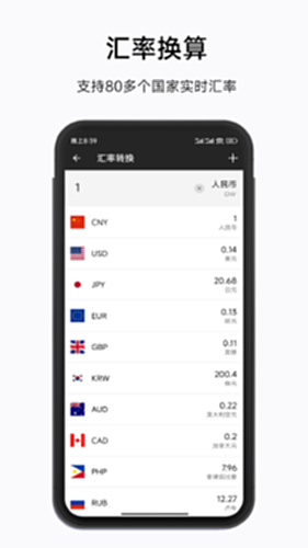 【汇率换算】实时汇率、支持30多个国家、长按拖动排序、点击切换基准货币、侧滑删除货币