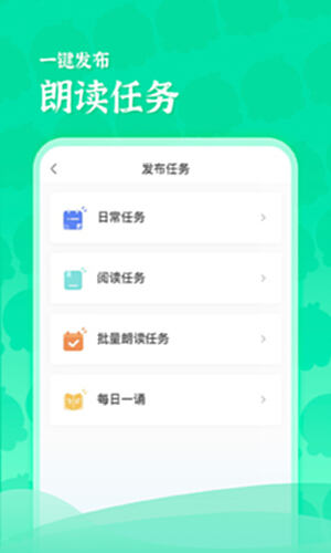 1. 多种任务一键发布:统编教材同步朗读、写字、整本书阅读任务