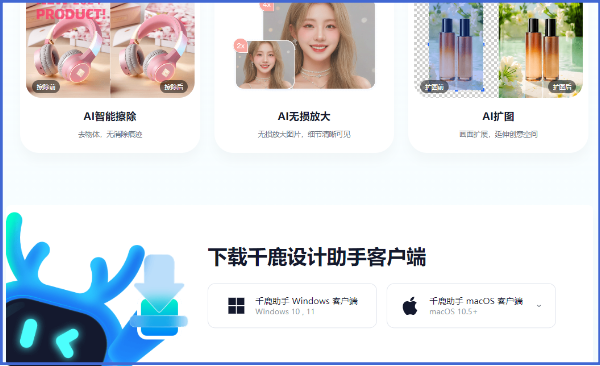 3、直击痛点,AI工具赋能:千鹿设计助手支持与设计软件数据互通,快速处理图片并返回设计软件,确保工作无缝衔接。