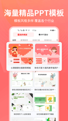 这款幻灯片制作软件提供多种类型PPT模板,包含商务汇报、主题教育、项目计划、活动策划、职业规划、述职报告、论文答辩等多种场景,可满足各行各业的日常使用需求。