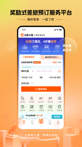 出差大橙是款非常适合出差人士的奖励式差旅预订平台,订机票、订酒店等成功后即可返现金给用户,且提供全额发票、行程单等报销凭证。