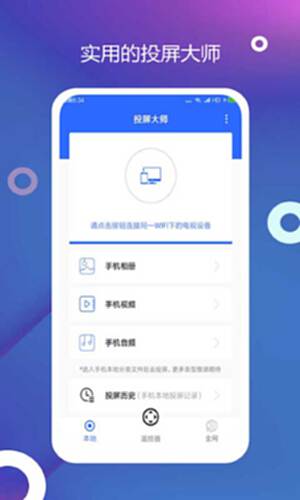 电视投屏,专为投屏而生。它支持将您手机里的视频,音频,照片等投放到同一局域网的电视设备上,同时也支持通过网络投屏,比如投放某个视频网址到电视上,电视就可以收看视频了。