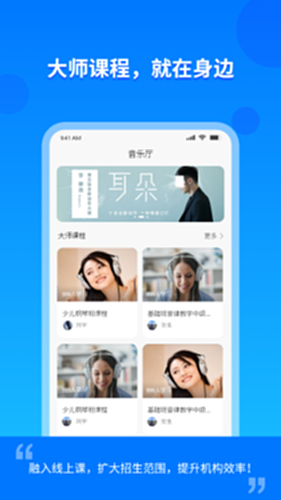 云上E教是一款专为专业音乐院校/国际艺术交流/音乐高考提供物联网智慧音乐教学、交流服务方案的应用工具。不仅应用于专业音乐教学中声乐、合唱、器乐、理论、舞蹈等专业精准服务,更可运用于心理、健康等多学科交叉人机体验。通过云上E教高校端可打破时空的桎梏,实现全球优质教育资源共享,突破地域局限。OMO物联场景打破传统教学的束缚,让专业音乐教学、艺术交流,更高效、更简单!