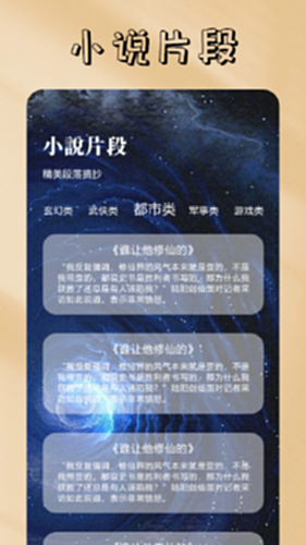 电子书一款精选小说片段及读书应用工具的应用软件,还包含时钟,文字放大镜及添加小说封页等功能,快来下载体验吧,期待你们的反馈