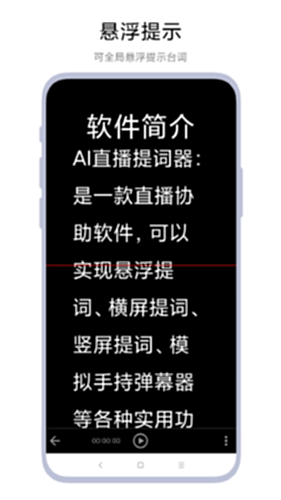 AI直播提词器,一款直播提词工具APP,可用于直播时辅助解说。软件支持扫描识别台词文本、支持导入word文件台词、支持导入txt文件台词。用户可以自定义提示词、设置大小、透明度、播放速度等参数,然后在手机屏幕全局悬浮提示。另外,软件还支持多种弹幕功能,用户可以设置字体大小、背景颜色等参数。