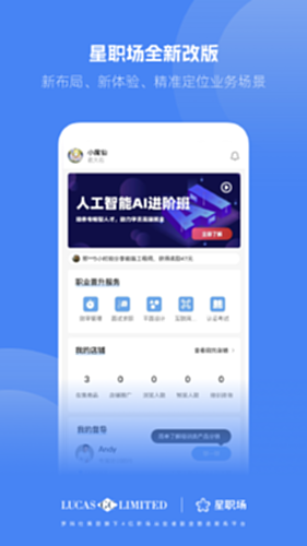 “星职场”是罗高仕旗下一款面向4亿职场从业者“零”成本创业的PaaS综合服务平台. “星职场”拥有三大核心业务模块,涵盖企业招聘、职业培训、健康管理,在“星职场”你可以零基础1分钟打造属于自己的职场创业店铺,不仅可以销售自己上架的产品,让数百万私域合伙人帮你裂变分销,你还可以采购平台提供的产品进行分销,目前“星职场”已累计帮助平台数十万合伙人平均每月创造数万元收入,被业界称为“斜杠青年直通车”