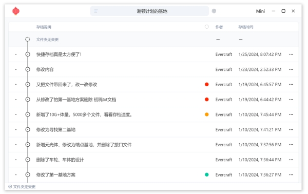 4、版本快照:自动捕捉文件夹所有变动,可随时回滚或生成新分支。