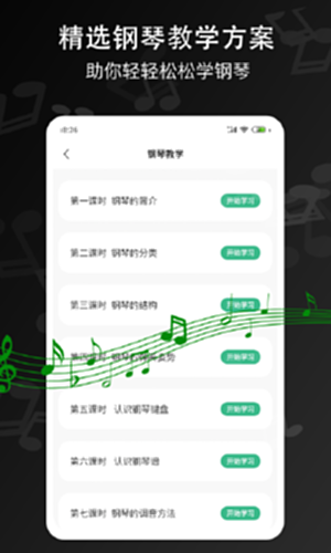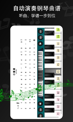 ●钢琴陪练:自动演奏钢琴谱,听曲、学谱、弹琴同步进行。