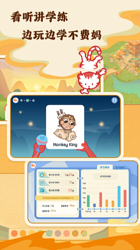 共6个级别累计超过300本,每一本采用一个中国经典故事,形成一个课堂,通过14个关卡,从单词、句型、课文,通过看听讲学练,让孩子边玩边学,不用死记,不用家长教,趣味闯关,主动学习记更牢。