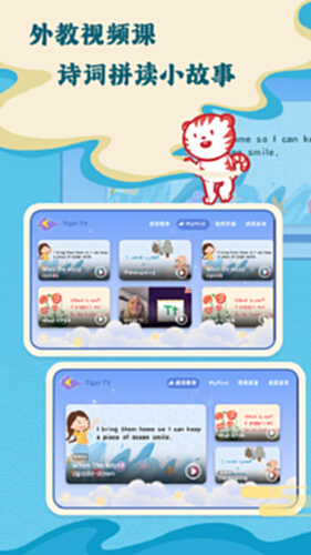 App内包括超过400节外教视频课,专业的欧美外教+中教组合课堂素质与成绩双提高,包括古诗讲解,自然拼读,寓言小故事等。提供孩子的全学科阅读题材,通识教育,全球视野。