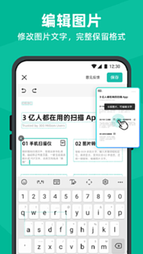 扫描全能王是一款集文件扫描、图片文字提取识别、PDF 内容编辑、PDF 分割合并、PDF 转 Word、电子签名等功能于一体的智能扫描软件。自动扫描,生成高清扫描件,支持JPEG、PDF 等多格式保存,还能将扫描件一键转换为 Word/ Excel/ PPT 等多种格式文档,通过手机、平板电脑、电脑等多设备同步查看。全球累积总下载量 17 余亿,用户遍布全球 200多个国家和地区。