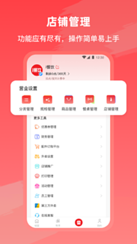商品、分类、规格、餐桌、店铺等设置应有尽有,操作简单易上手。