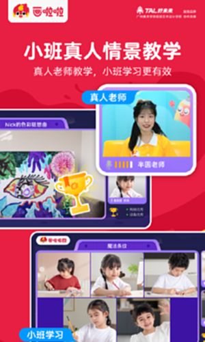 画啦啦美术课堂是一款儿童美术教育APP,采用先进的教学法和理念设计趣味性课程,支持多设备上课和灵活的学习安排。通过小班教学和小组讨论,促进孩子的想象力、创造力、社交能力和学习热情。
