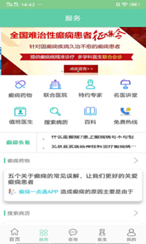 「在线咨询」咨询、在线预约等功能,随时为您一对一解答癫痫疑问。