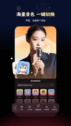 2、音频处理:支持智能配音、语音加字幕、音频降噪、音乐推荐、搜索收藏及自动/手动音乐卡点。