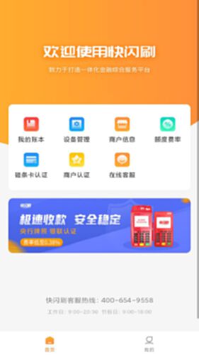 快闪刷是一款专为小微商户提供便捷、高效服务的移动工具,支持商户进件、绑定设备、查询账单等功能,是广大中小微商户的贴身管家。