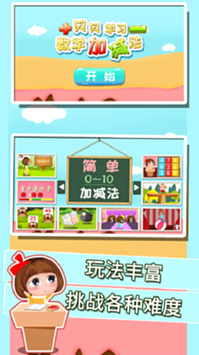 2、精选题库,10以内的加减法,1+1=?;50以内的算法,7+33=?;100以内的速算法,99-25?;每道数学题都是为了小朋友精心设计的,总有符合宝宝目前知识水平的算术题。