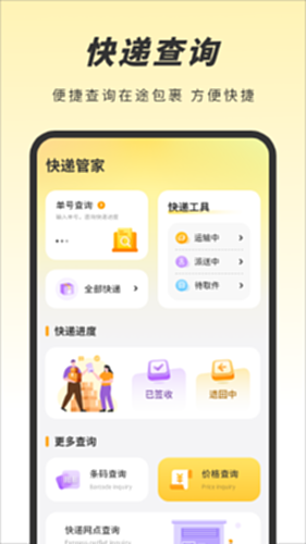 天天快递是一款功能丰富、操作便捷的快递管理应用, *单号查询:在该功能模块,您只需输入快递单号,就能快速查询到快递的实时运输状态。无论是包裹处于揽收、中转,还是即将送达的阶段,都能一手掌握,让您随时了解快递动态。 *快递工具:此模块细分了 “运输中”“派送中”“待取件” 三个选项。点击对应选项,可集中查看处于相应状态的快递信息,便于分类管理,提高查询效率。 *全部快递:汇总了您所有的快递订单,无论来自哪个购物平台或快递公司,都能在此统一管理,避免在不同应用间切换,让快递管理更加便捷。 *快递进度展示:通过直观的图标和文字,清晰呈现快递 “已签收” 和 “退回中” 的状态,方便您确认包裹是否安全送达,或者及时处理退回的快递。 *条码查询:支持扫描或输入快递条码,快速获取快递的详细信息,为不便于记录单号的情况提供了另一种查询方式。 *价格查询:您可以在此查询不同快递公司的收费标准,对比价格,选择性价比高的快递服务,在寄件时做到心中有数。 *快递网点查询:点击 “立即查询”,即可查找附近的快递网点,包括地址、联系电话等信息,方便您上门寄件或自取快递。