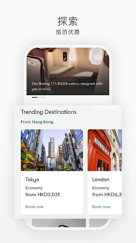 国泰航空官方手机应用程序是常伴您左右的同行旅伴,照顾您由预订到登机的一切需要。以您为本的用心设计,让您专注旅程上的每个细节。用心为您设计主页面为您带来个性化的直观体验,一切所需均能触手可及。预订变得轻松只需要直接使用手机应用程序,您便可轻松地预订国泰航空及国泰港龙航空航班,前往超过 190 个目的地,并专享手机应用程序带来的优惠。轻松管理预订网上预办登机、取得手机登机牌、通过智能客服查询行李信息,或者选择心仪的机上座位或餐膳。航班变动期间,随时随地管理行程及重新订位,并收取重要航班更新信息。丰富机上体验了解您所乘航班的机上娱乐,或者免费阅读全球畅销报章杂志。乘搭国泰港龙航空航班时,您更可通过手机应用程序欣赏数以百计的精彩娱乐节目。马可孛罗会功能查看马可孛罗会账户信息、管理礼遇、换取贵宾室使用券,以及使用电子会员卡。