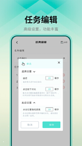 屏幕自动点击:帮助广大安卓用户解放双手,实现短时间内快手连续点击加速,轻松设置点击频率;一键录制,自动重复操作,轻松实现按键精灵的效果!