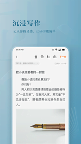 【写作】 便捷发表:支持N年内定时发表,保存草稿、手机/电脑多端同步,实时本地保存,不必担心丢稿 沉浸体验:可进行多种背景色和字号设置 错字检测:业内领先的AI专利技术进行网文错别字检测 码字日历:打卡每天写作字数,记录坚持和进步
