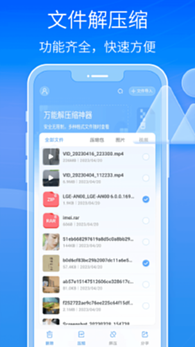 全能王解压专家是强大的压缩文件管理器,是完全免费的新一代压缩软件,相比其它压缩软件占用更少的系统资源用,有更好的兼容性,压缩率比较高!功能特点: