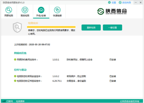 2、操作简单便捷:陕西信合网银助手采用一键式检测与修复设计,用户无需专业知识即可快速完成所有配置。