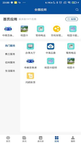 校园即时消息: 校园消息推送及校园通讯录的功能,为广大师生提供真实校园社交服务和信息服务,不仅能满足师生即时通讯和消息推送,还接收并转发来自校园应用的消息。 应用市场: 可实现各类第三方应用的集成与接入,为广大校内师生提供信息展现平台,从而让平台获得持续的生命力。 公众服务: 将借鉴微信成功的业务形态,搭建面向中南大学移动门户的公众服务平台,通过这一平台,广大合作伙伴和师生基于移动门户平台标准化的开发接口和管理规范提供公众服务。