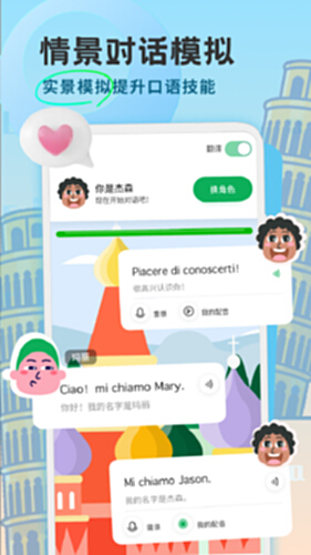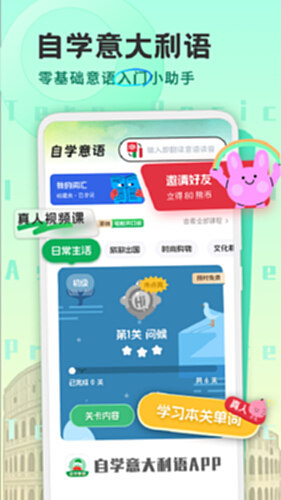 采用游戏化学习法,让你在轻松闯关中累积词汇、掌握常用短语。万丈高楼平地起,意语从学习词汇和常用短语开始,你也可以像母语者般流利说意大利语。
