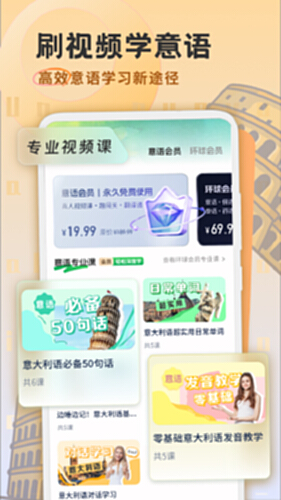 专业的意大利语学习软件,助力意语学习,意大利旅游沟通无障碍。