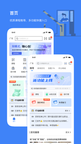 于实⽤性的要求,⾏业⼈员可通过本平台学习相关⾏业技能培训课程,可以在练习模块进⾏理论练习,学圈模块进⾏学习交流等;本平台聚合了丰富的