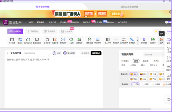 4、高字符量合成:电脑端单次最多支持合成8000字,满足长视频解说等大段文字的配音需求。