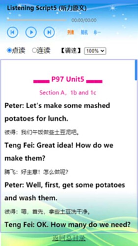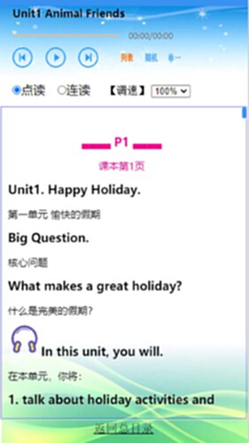 软件采用纯正语音环境,同步学习,一次下载,各年级齐全,可选择单册、上下册或全套进行注册学习,支持循环朗读、连续听读等多种模式。