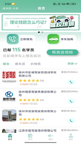 彭城学车是一款提供学员学习理论知识,完成理论学习学时的APP。具有操作方便、题型丰富、学习高效等优势。有效提高学员理论考试通过率。