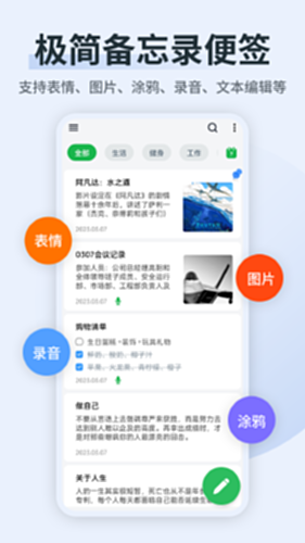备忘录便签精灵电脑版介绍:备忘录便签云助手是一款多功能记事应用,支持通过颜色分类快速创建笔记、清单和日记,实现高效生活记录。其特色功能包括桌面贴纸便捷查看、密码保护隐私内容以及智能提醒重要事项,帮助用户随时随地整理灵感、管理日常,让生活更有序多彩。