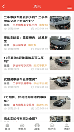 事故车交易网专业事故车交易、二手事故车出售、事故车买卖过户、残值车售卖等汽车后市场服务体系平台,打造透明、快速的事故车辆交易模式。介绍事故车修复、事故车理赔、电动事故车回收及维修、事故车报废处理的相关知识,为车友提供事故车鉴定、泡水车维修等实时咨询和转让出售信息,通过事故车网直卖管理系统买卖车辆更放心。