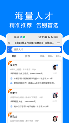 同城招聘电脑版介绍:同城招聘APP电脑版是一款专注于本地化人才服务的应用,为中小企业提供职位发布、简历搜索和人才推荐功能,同时帮助求职者免费发布个人简历、便捷获取同城招聘信息,实现高效精准的本地人才匹配。