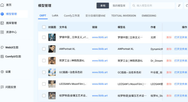 4、资源集中管理:LiblibAI对本地模型和生成的图片进行统一管理,支持分类、添加封面和触发词,让资源井然有序。