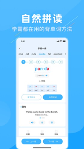 应用内置丰富的词汇资源,涵盖不同年龄段的学习需求,紧密贴合学习内容,高效掌握重点词汇。通过A领读、个性化的学习计划和科学的记忆方法,让每个用户能高效快速背单词。