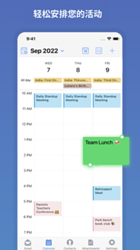 - 轻松安排日程,查看/编辑活动,可设置提醒。