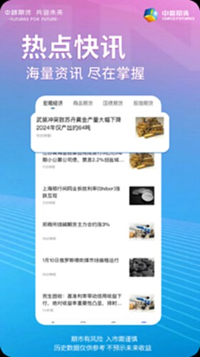 中粮期货交易版免费为用户提供全面的国内期货行情、期货资讯以及期货开户等服务,中粮期货是中金所、上期所、大商所、郑商所、上期能源、广期所的结算会员。