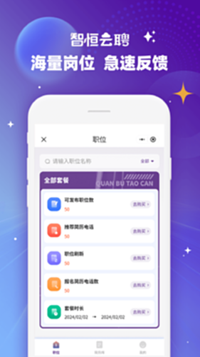 职位搜索精准高效:用户可以根据自身需求,设置工作经验、薪资范围、工作地点等条件,快速筛选出符合自己期望的职位。智恒云聘拥有庞大的职位数据库,覆盖多个行业和领域,确保用户能够找到最匹配的岗位。