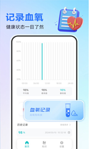 血氧宝是一款可以监测你健康的APP,能够快速、精准地测量你的血氧,还能记录在您的健康数据中,随时可查看,及时了解自己的健康状况。另外还提供了丰富的血氧知识,让健康成为你生活习惯。