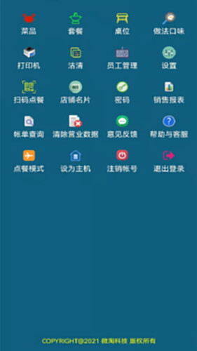功能包括:出品管理、套餐管理、台位管理、做法口味管理、打印机管理、菜品估清、员工管理、扫描点餐、餐厅名片管理、收银管理、销售报表统计、账单查询等。