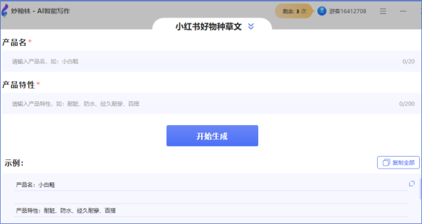 2、多场景文案创作:妙翰林专门支持抖音、小红书等社交媒体文案,以及招聘信息、产品说明书等商业文本的一键生成。