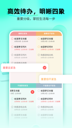 提醒功能:设置单次或重复提醒,支持多种提醒方式(如响铃、震动、通知栏),确保重要事项不再遗漏。