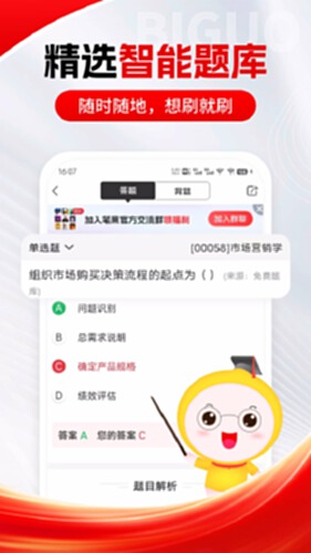 笔果教育利用自身技术上的优势,对App不断的更新优化,不断的完善题库数据,让考生提前学习效率轻松通过考试。